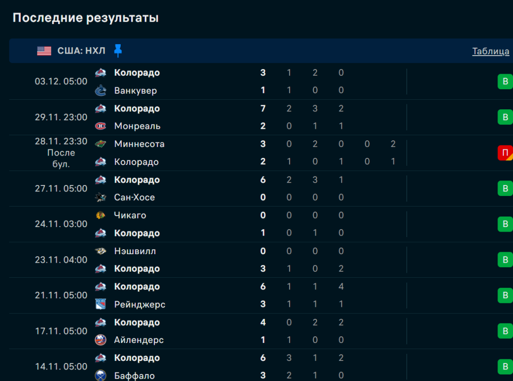 Последние игры Колорадо