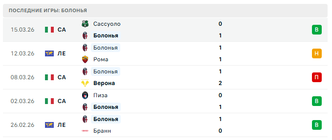 Последние игры Болоньи