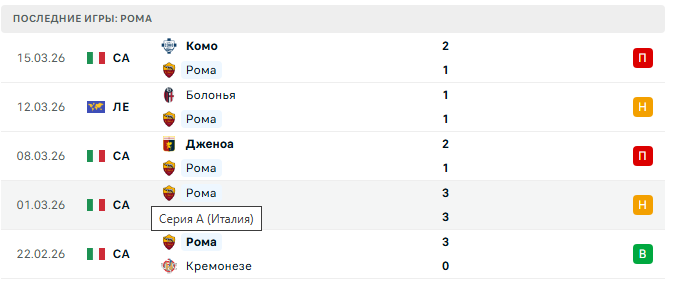 Последние игры Ромы