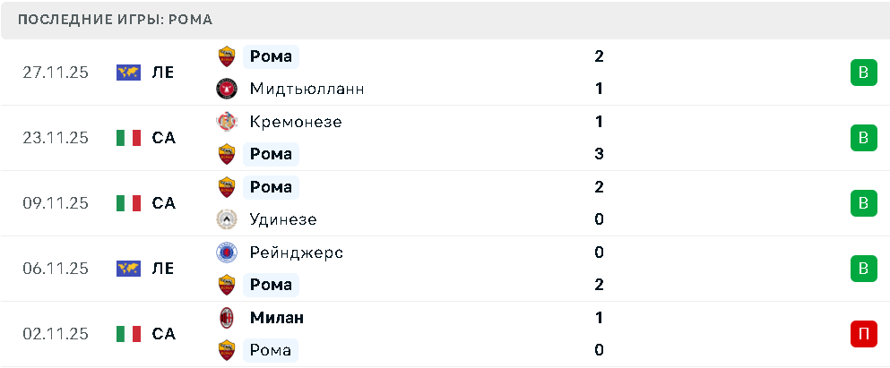 Последние игры «Ромы»