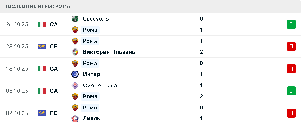Ни в одном из пяти последних очных матчей соперники не расходились миром. Один раз выиграла Парма при четырех победах Ромы.