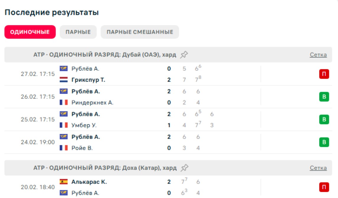 Последние игры Рублева