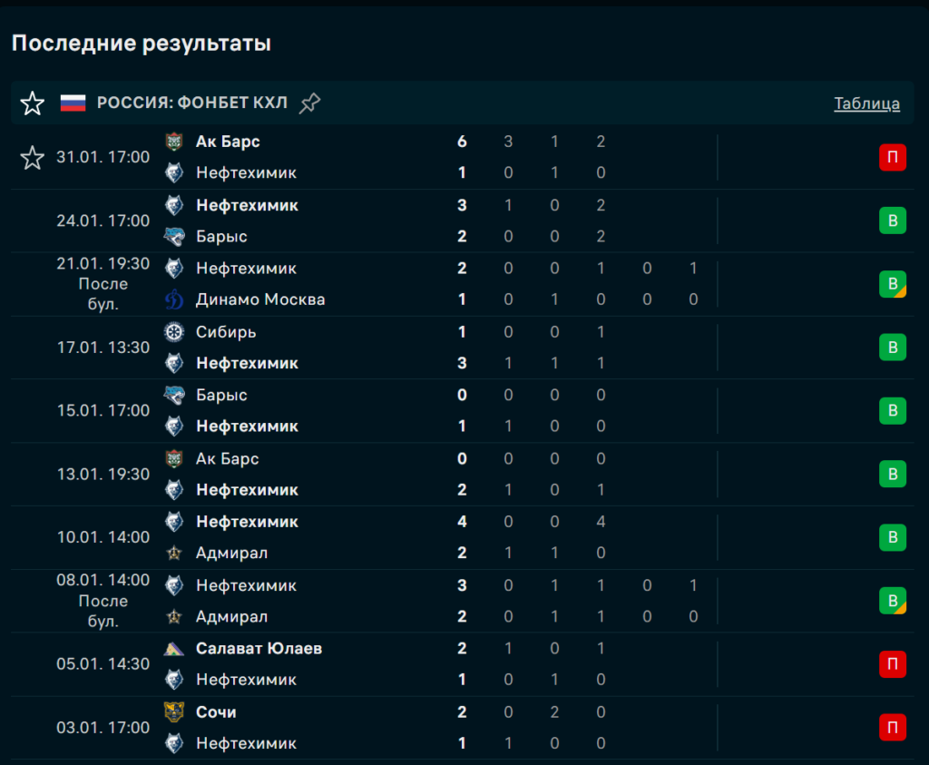 Нижнекамцы почти весь январь играли на взрослом уровне без шайбы. Серия сухих и «почти сухих» матчей не случайность. «Нефтехимик» охотно принимает низкий темп, режет входы соперника и терпит, пока не появляется шанс в переходе. Осечка в Казани 1 : 6 выбивается из общего ряда, но скорее как разовый провал на фоне длинной серии.