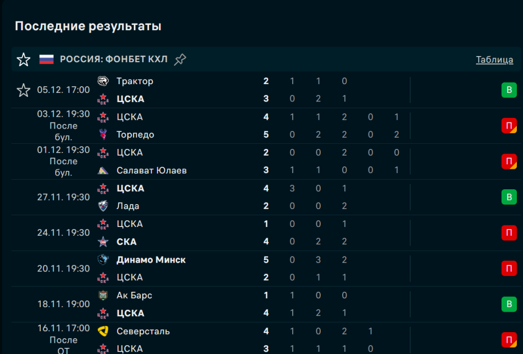 - ЦСКА не выигрывает в основное время в 5 из 6 последних матчей