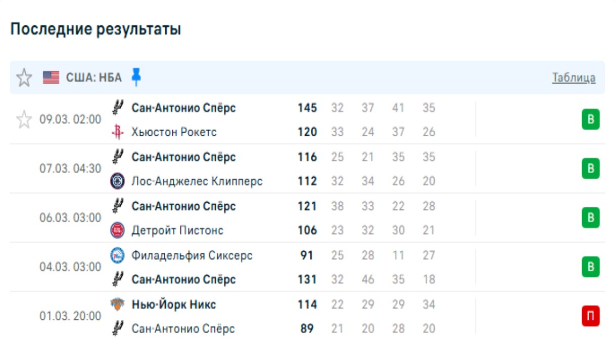 Последние игры Сан-Антонио Сперс