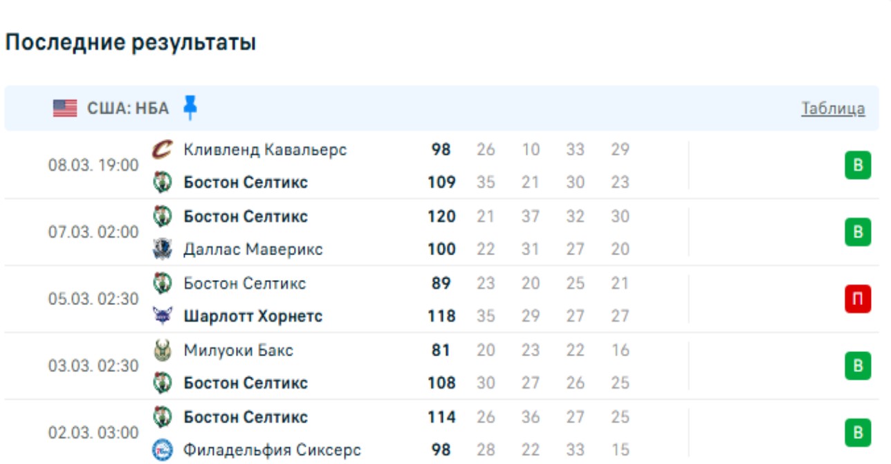 Последние игры Бостон Селтикс