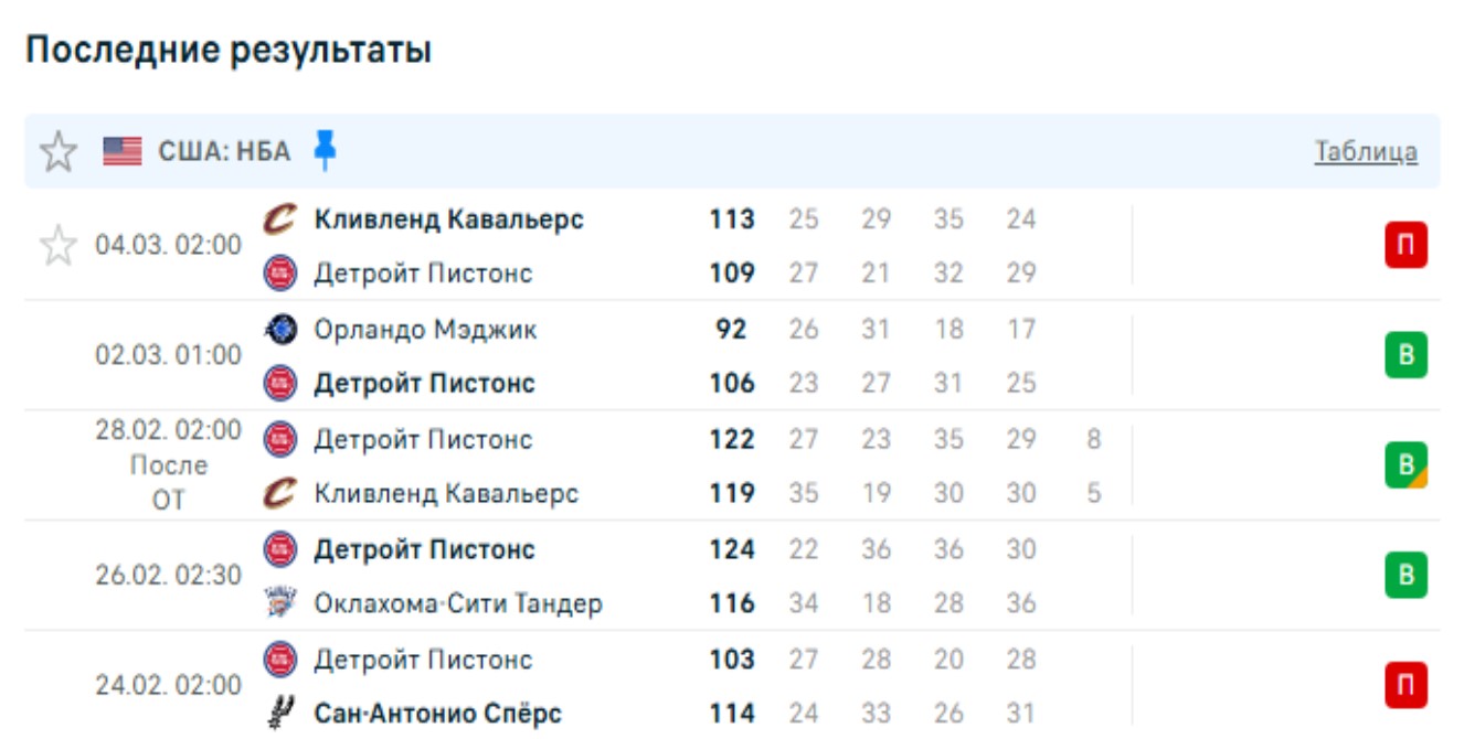 Коэффициенты на игру Сан-Антонио Сперс — Детройт Пистонс