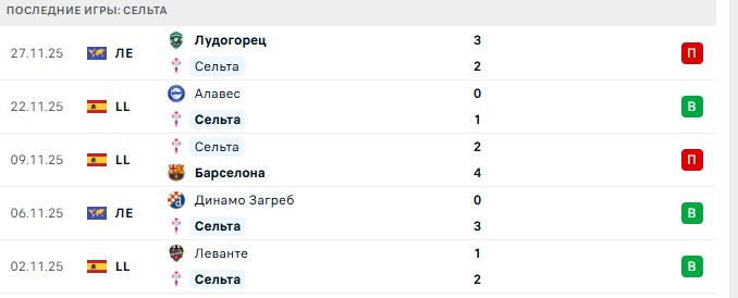 Хозяева занимают 11-е место в турнирной таблице, демонстрируя нестабильную игру. Несмотря на неплохую домашнюю статистику, команда имеет отрицательную разность мячей (16:18), что указывает на проблемы в обороне. В последних матчах «Сельта» показывает хорошие результаты, но пропускает довольно много.