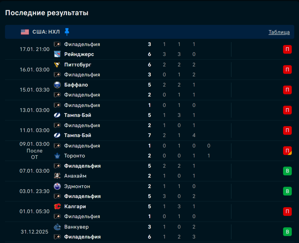 Последние игры Филадельфия Флайерз