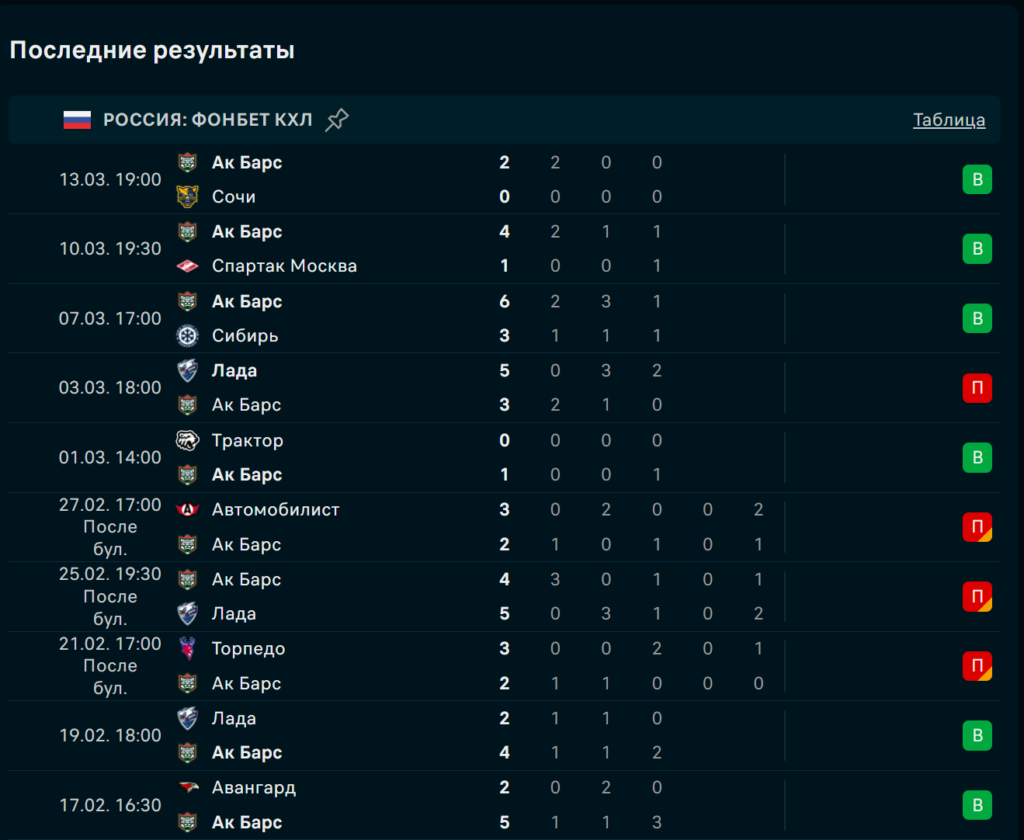 Последние игры Ак Барс