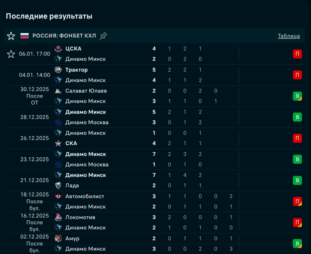 Статистика личных встреч Северсталь Череповец — Динамо Минск