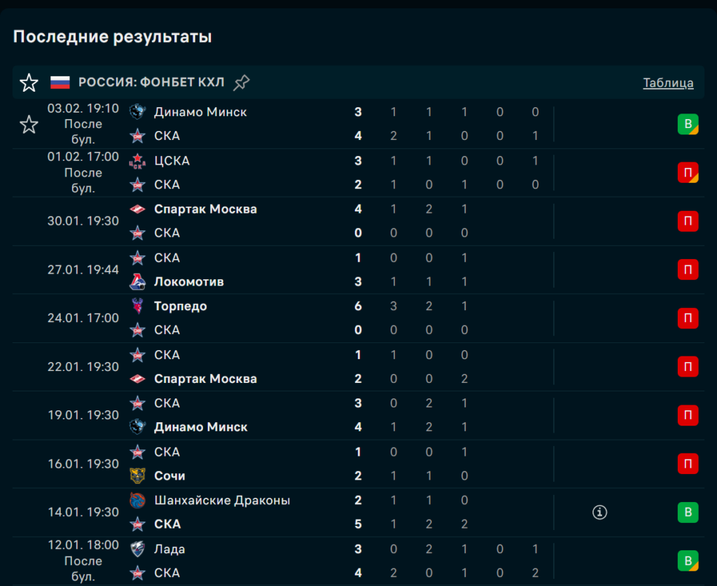 Статистика личных встреч Северсталь Череповец — СКА Санкт‑Петербург