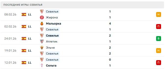 Нервионцы в последнем матче против Жироны добыли важную ничью 1:1 на выезде, забив гол на 90+2-й минуте благодаря Кике Саласу. До этого Севилья одержала минимальную победу над Атлетиком 2:1, что придало команде уверенности.