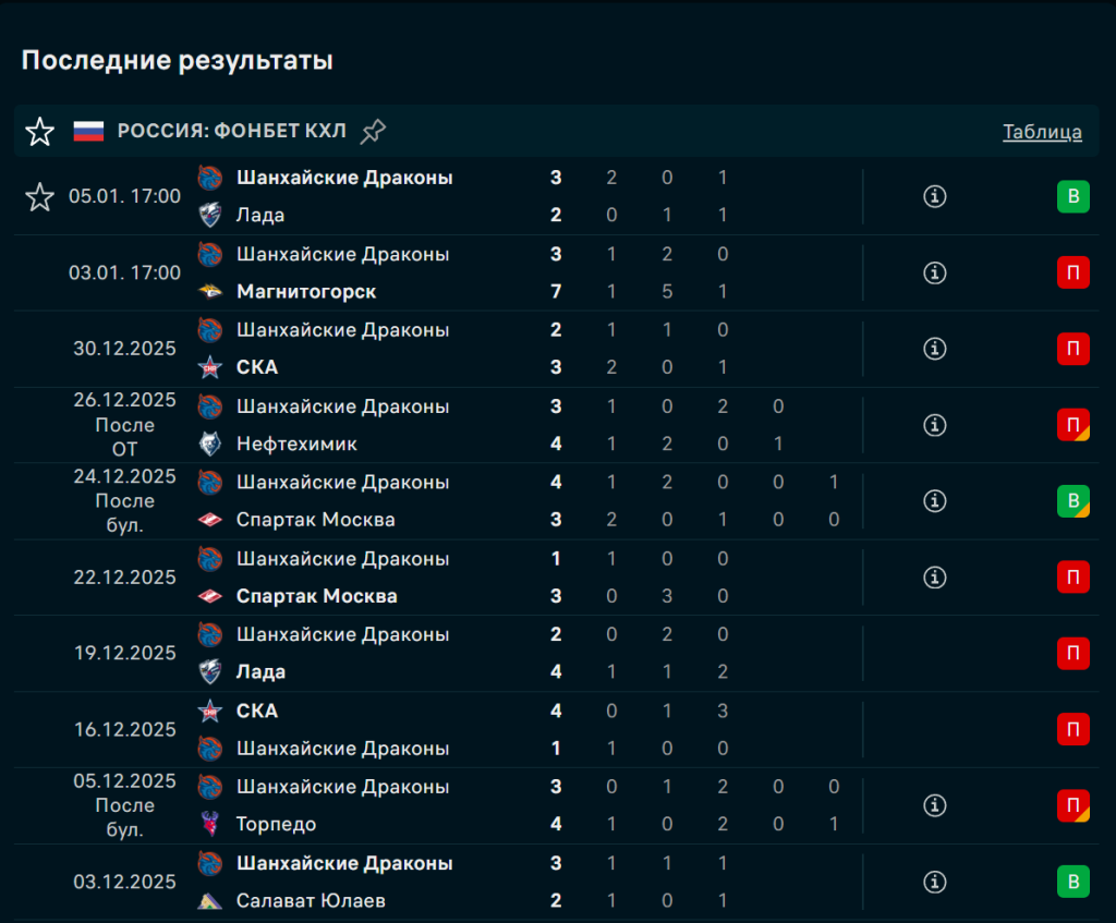 «Шанхай» — самая уязвимая команда лиги в обороне: 137 пропущенных шайб, xGA — 3,4 за матч. При этом атака показывает неплохую продуктивность (106 голов), особенно дома — в среднем 2,7 шайбы за игру. Команда играет в открытый, рискованный хоккей: при потере шайбы часто оставляет зоны открытыми, что наказывают даже средние соперники. Последние матчи подтверждают: 3:7 от «Металлурга», 2:3 от СКА, 3:4 от «Нефтехимика». В единственной победе за 5 игр (4:3 над «Спартаком») спасла реализация в большинстве.