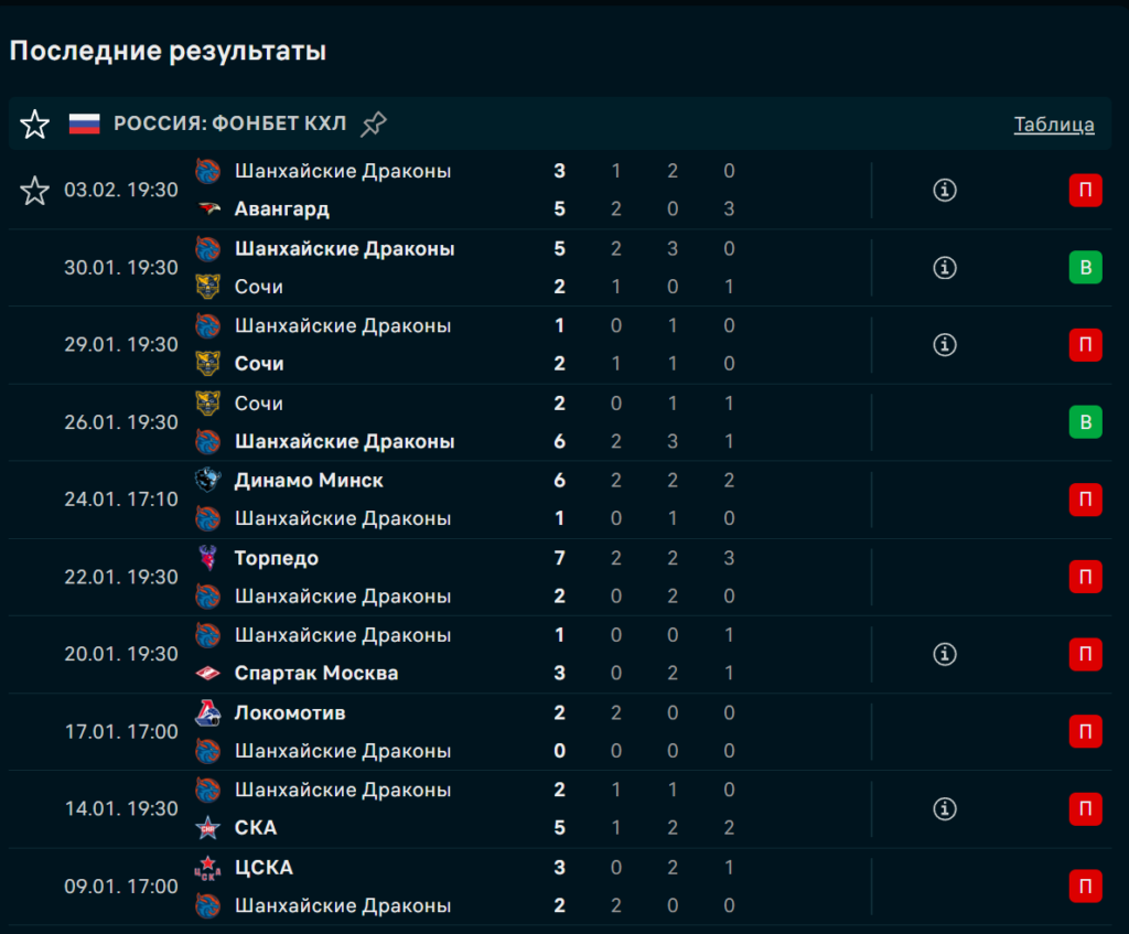 В очных встречах чаще сильнее «ЦСКА Москва». Даже при раннем голе «Шанхай Дрэгонс» москвичи быстро возвращают игру к своему темпу и дожимают в концовках. Январский пример: 3:2 для «ЦСКА» после камбэка. На арене «Драконов» равенство держится дольше, но третий период обычно уходит гостям за счёт глубины.
