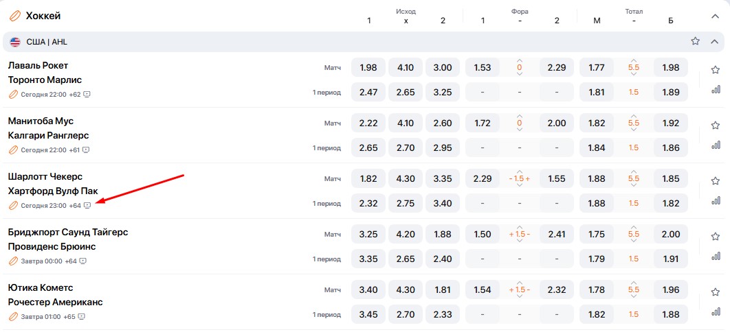 Многие хоккейные матчи показывают букмекерские платформы. Например, в Winline при наличии трансляции в линии появляется символ телевизора. Для просмотра достаточно авторизоваться или зарегистрироваться.