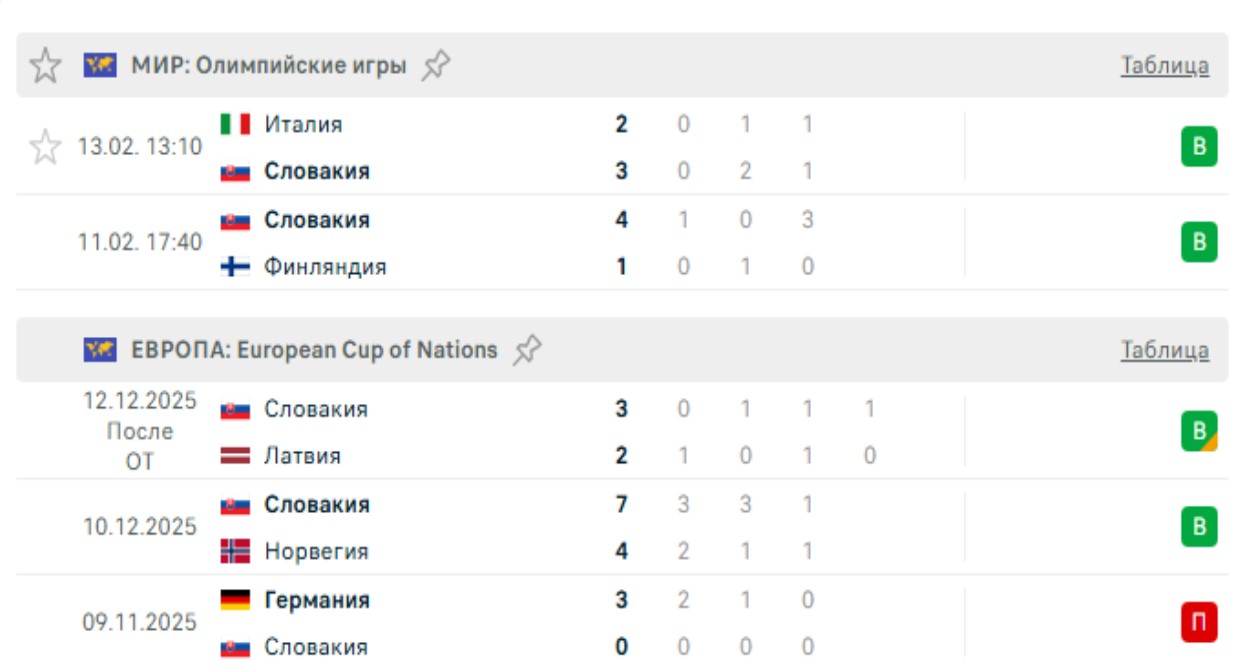 Последние игры Словакии
