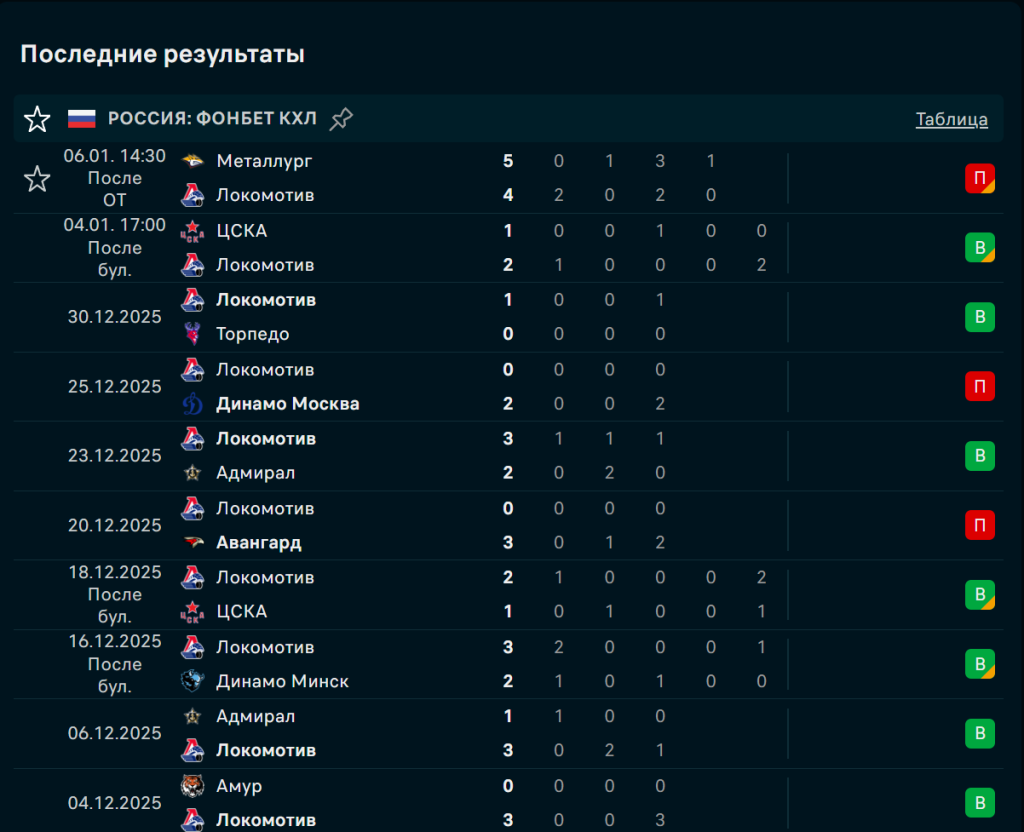 Последние игры Локомотив Ярославль