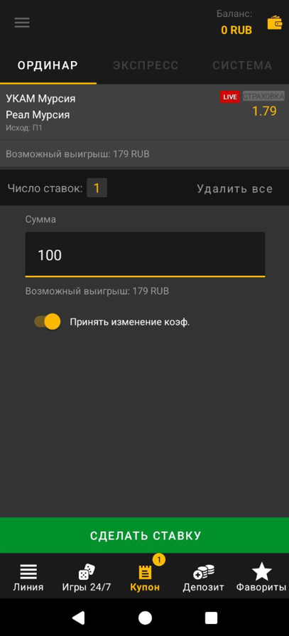 - Ввести сумму ставки.