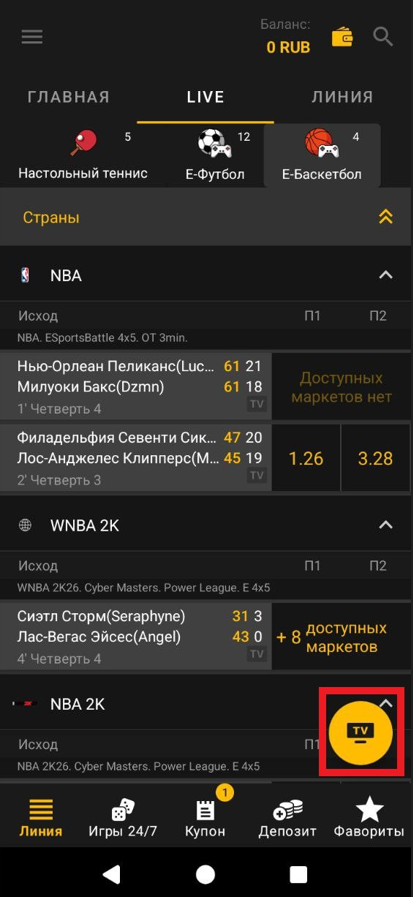 - Перейти в раздел live-событий.