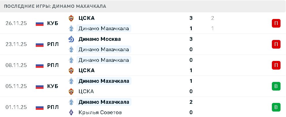 - «Динамо» Махачкала — лишь в двух из последних десяти.
