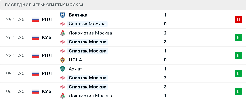 До поражения от «Балтики» в предыдущем туре спартаковцы одержали победы над «Локомотивом» (дважды), «Ахматом» и ЦСКА.