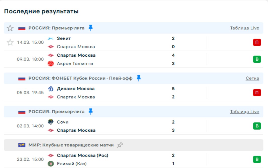 Статистика личных встреч Спартак — Динамо