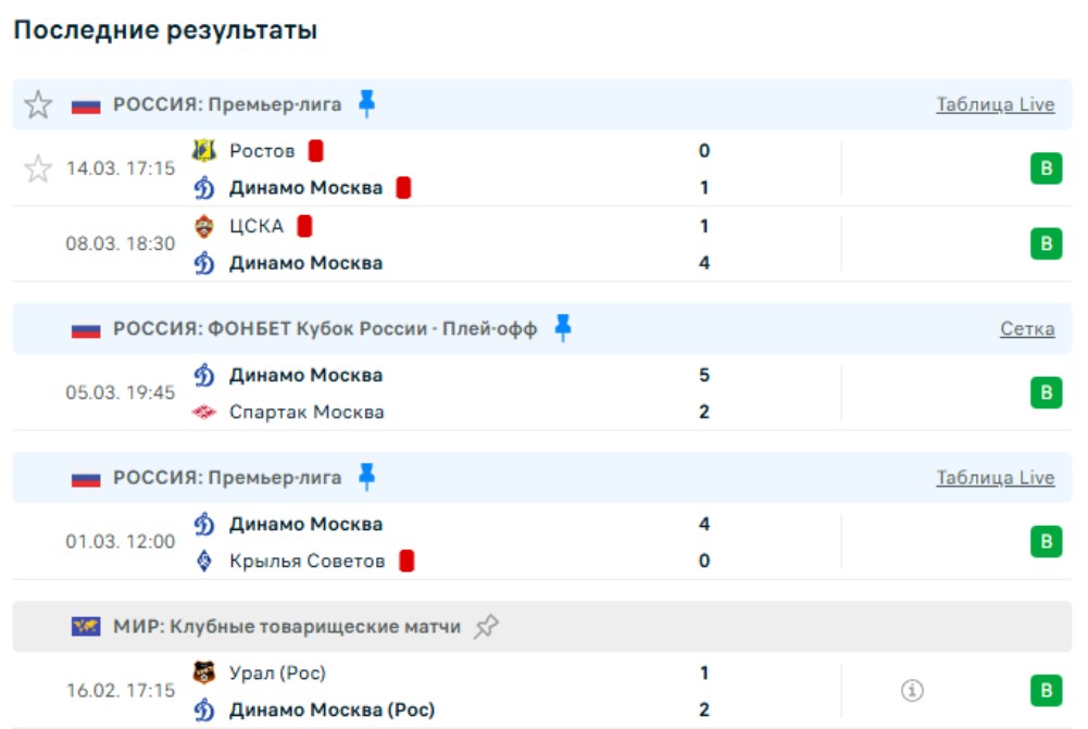 Последние игры Динамо
