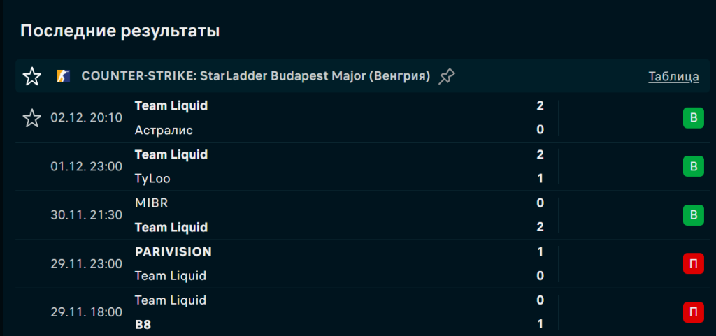 4 декабря в 16:00 по московскому времени в рамках третьего этапа StarLadder Budapest Major состоится матч формата BO1 между Team Spirit и Team Liquid. «Драконы» являются действующими чемпионами прошлых мейджоров и обладают сильным индивидуальным составом, однако их форма на старте сезона нестабильна: 4 поражения в последних 5 матчах, включая сухие проигрыши от Team Falcons и Vitality.