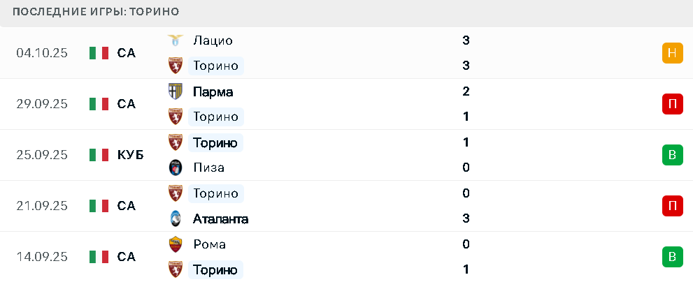 Последние игры Торино