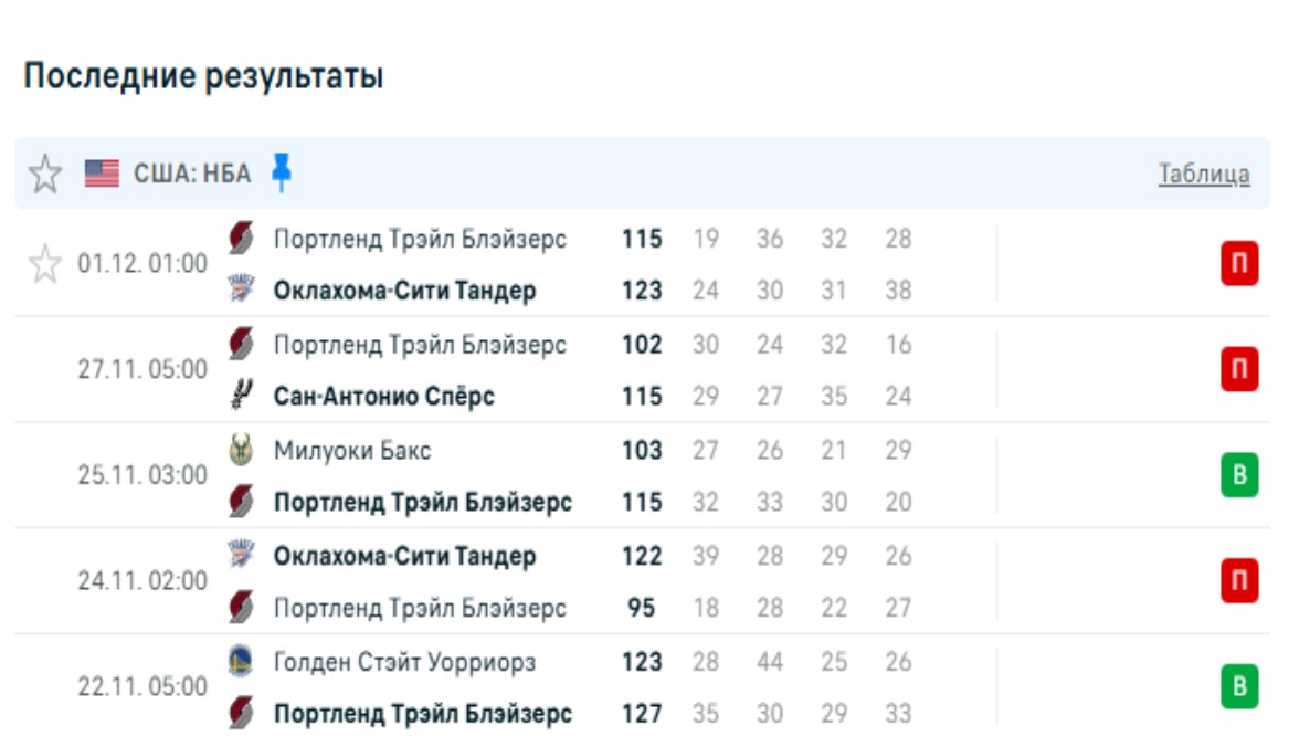 В понедельник Блэйзерс уступили главному лидеру этого сезона Оклахоме (1 поражение в чемпионате). На этот раз равная игра продолжалась 3 четверти, на последний перерыв Портленд ушел с преимуществом в 2 очка, но в итоге уступил 115:123.