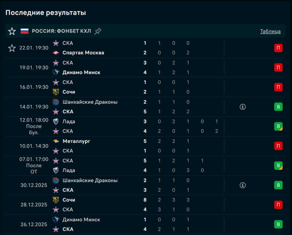 Последние игры СКА Санкт-Петербург