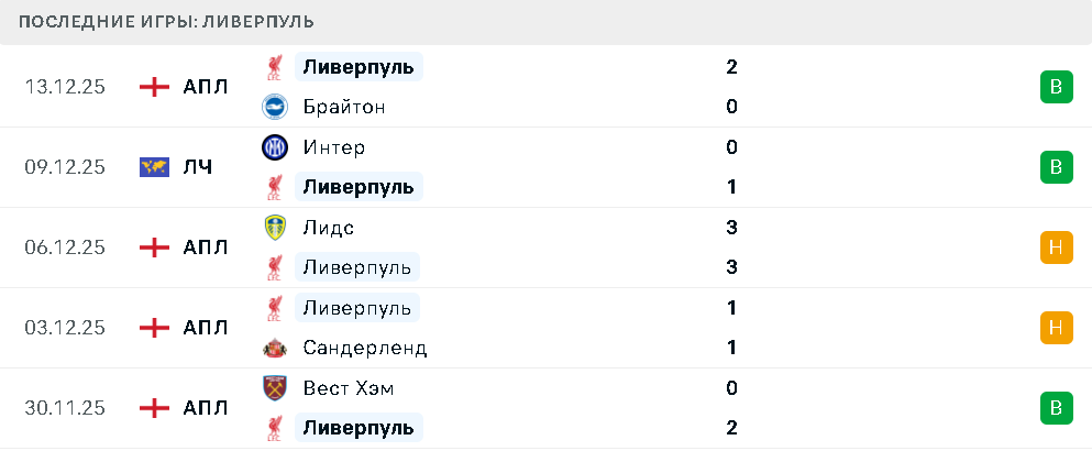 - «Ливерпуль» не знает поражений на протяжении пяти последних встреч