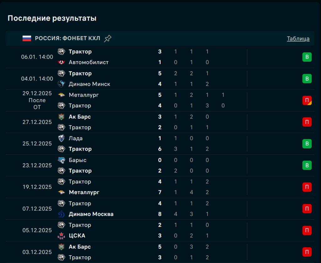 Последние игры Трактор Челябинск