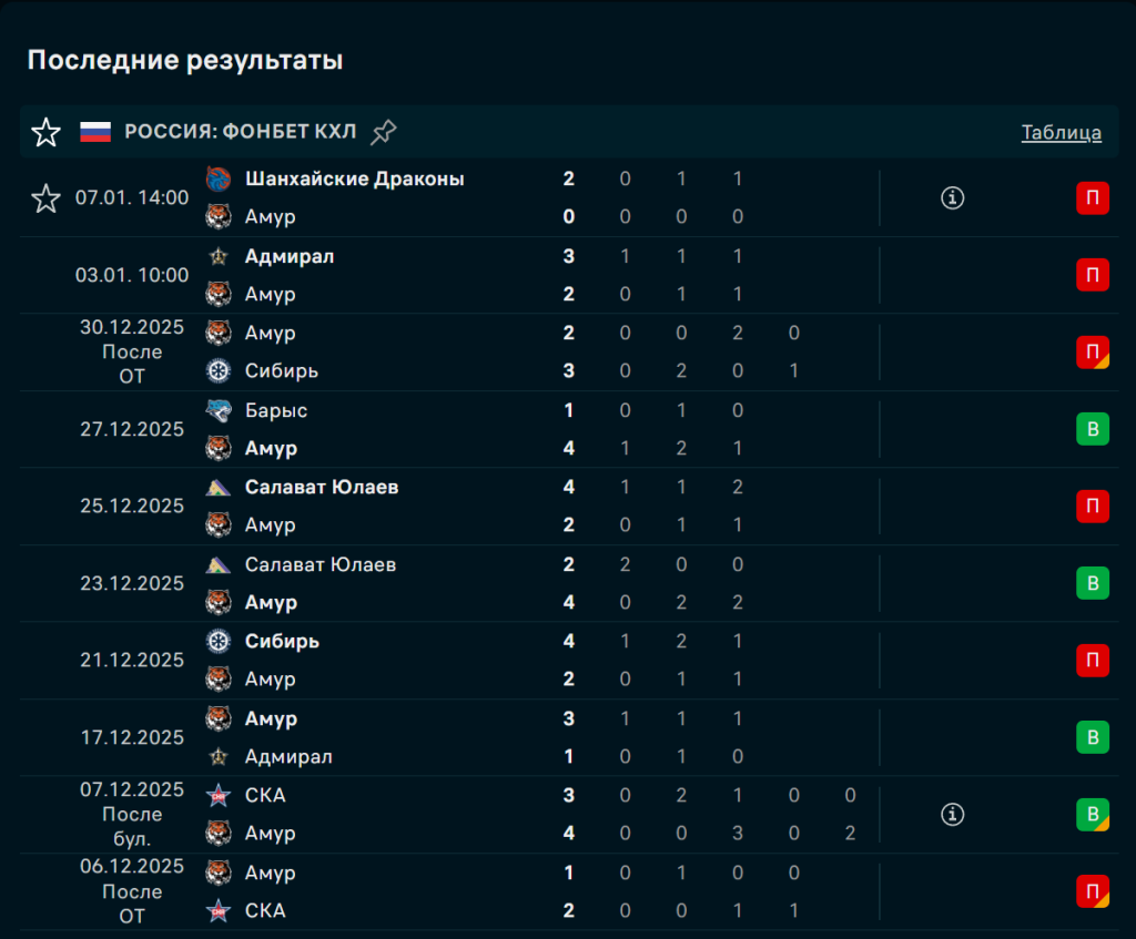 Последние игры Амур Хабаровск