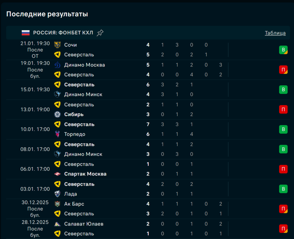 Последние игры «Северсталь Череповец»