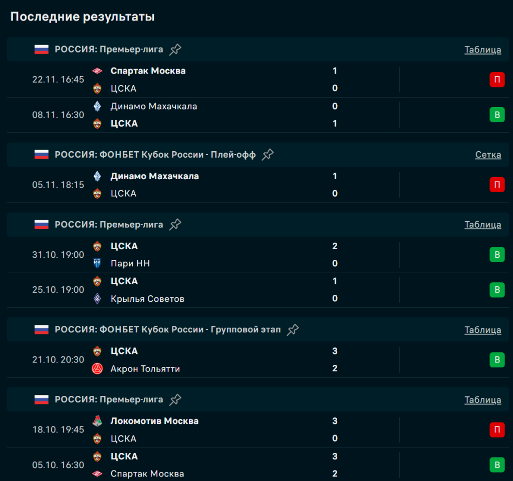 ЦСКА на своём поле — сильный фаворит, чаще побеждает дома, особенно против команд из нижней части таблицы.