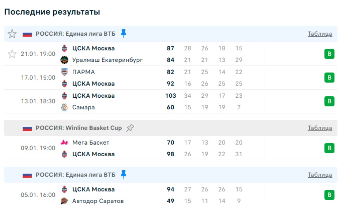 Последние игры ЦСКА