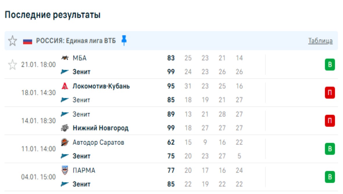 - В рамках Единой лиги ВТБ Зенит трижды победил в предыдущих 5 матчах.