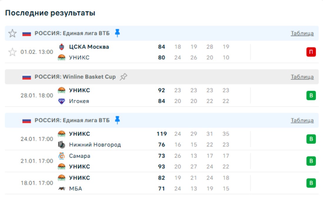 Казанцы напротив часто терпят неудачи в последнее время. Для фаворита два поражения с середины января — критическая ситуация. Подопечные Велимира Перасовича идут вторым в Единой лиге ВТБ с отставанием в одну победу от лидирующего ЦСКА. При этом у УНИКСа игра в запасе.