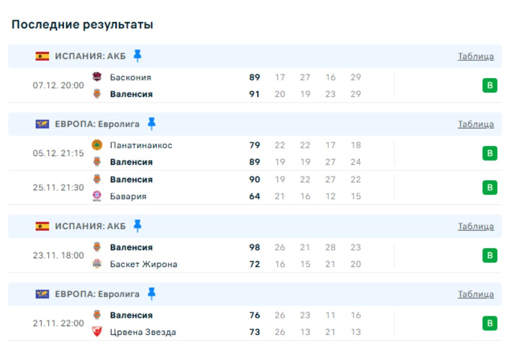 В прошлый раз клубы пересекались в январе, тогда Валенсия победила дома 93:88. На счету испанцев небольшой перевес по личным встречам — победы в 7 из 13 предыдущих поединков.