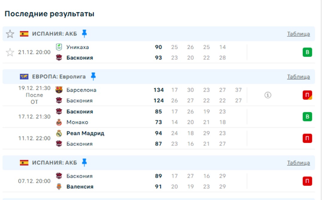 У Басконии 4 поражения в 7 предыдущих матчах в Евролиге и чемпионате Испании. В национальном первенстве команда Паоло Гальбиати в воскресенье выиграла на выезде у Уникахи 93:90 и поднялась на восьмую строчку, дающую право на участие в плей-офф.
