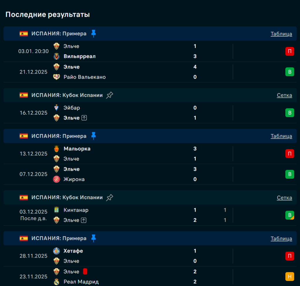 10 января, 23:00 МСК, Estadio de Mestalla, Валенсия. 19-й тур чемпионата Испании. «Валенсия» занимает 18-е место с 16 очками и находится в зоне вылета. «Эльче» — на 9-й строчке с 22 очками, вне зоны плей-офф, но в безопасной дистанции от дна. Хозяева не выигрывают в 5 последних матчах в Ла Лиге (1 победа в Кубке над «Спортингом Хихон»), пропустив 8 голов в 3 домашних играх. Гости, в свою очередь, не побеждали на выезде в 8 матчах подряд (3 ничьи, 5 поражений), но демонстрируют высокую результативность: в 7 из 10 последних матчей проходил тотал больше 2,5. Обе команды имеют уязвимые обороны: у «Валенсии» — 30 пропущенных голов, у «Эльче» — xGA = 22,77 при 23 пропущенных, что указывает на удачное стечение обстоятельств, а не надёжность защиты.