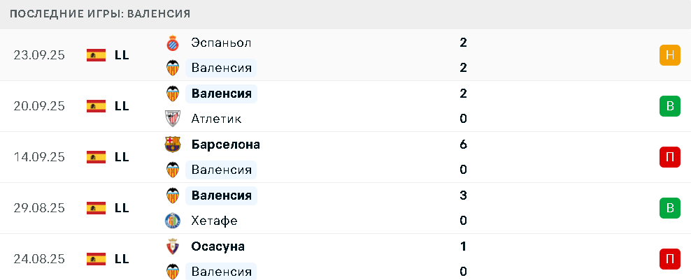 В пяти последних матчах чемпионата Испании Валенсия потерпела поражения от Осасуны и Барселоны, одержала победы над Хетафе и Атлетиком, а также сыграла вничью с Эспаньолом.