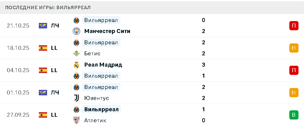 В пяти последних матчах в разных турнирах Вильярреал одержал победу над Атлетиком, а затем сыграл вничью с Ювентусом и Бетисом. Также были поражения от Манчестер Сити мадридского Реала.