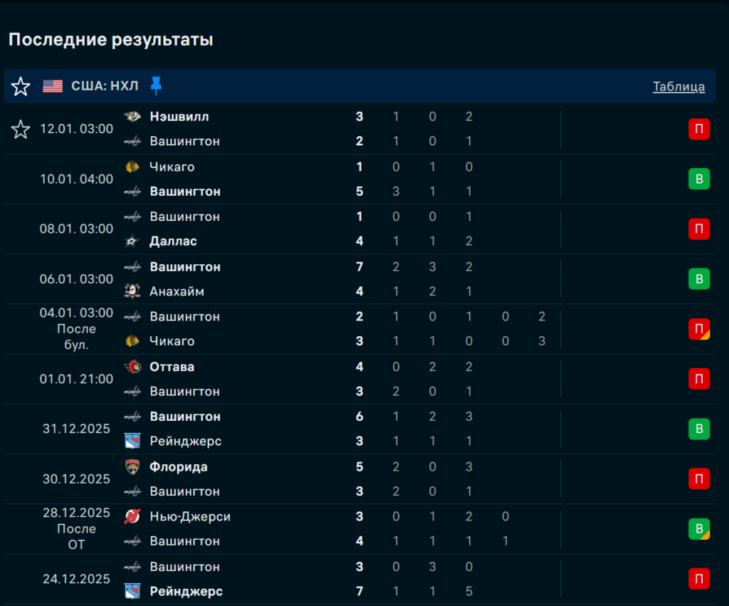 Последние игры Вашингтон Кэпиталз