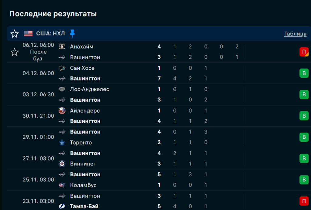 «Вашингтон» стабильно набирает очки с конца ноября: 6 побед и 1 поражение по буллитам от «Анахайма» (3:4). За последние 6 матчей команда забросила 25 шайб — лучший показатель на Востоке. Дома «Кэпиталз» выиграли 3 матча подряд и в 4 из 4 последних домашних игр забивали минимум 4 гола. Овечкин в отличной форме: 8 очков (4+4) за последние 7 игр. Оборона стабильна — в 4 из последних 5 матчей пропущено не более 1 шайбы в основное время.
