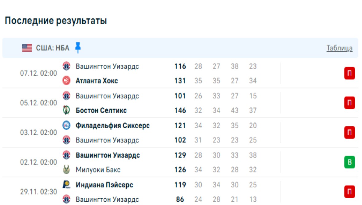 В предыдущих 5 матчах подопечные Кифа выиграли еще раз. У Вашингтона со старта сезона всего 3 победы. Это меньше, чем у остальных во всем чемпионате НБА, команда закономерно занимает последнее место в Восточной конференции. Идущая предпоследней Индиана побеждала в 2 раза больше.