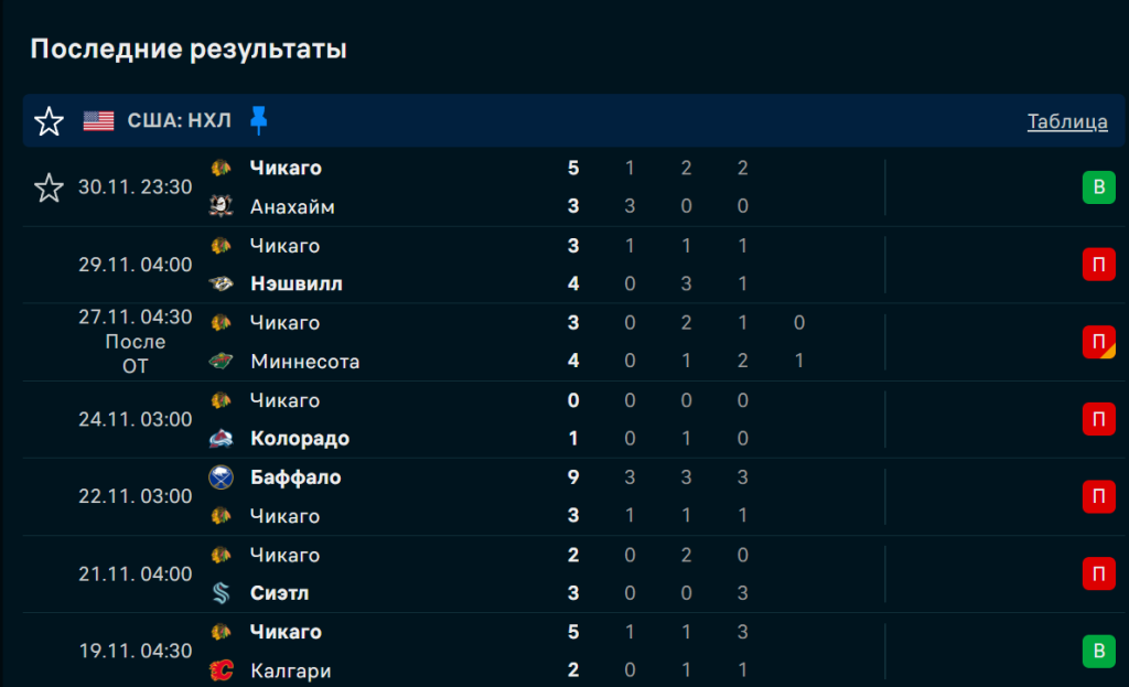 Последние игры Чикаго Блэкхокс