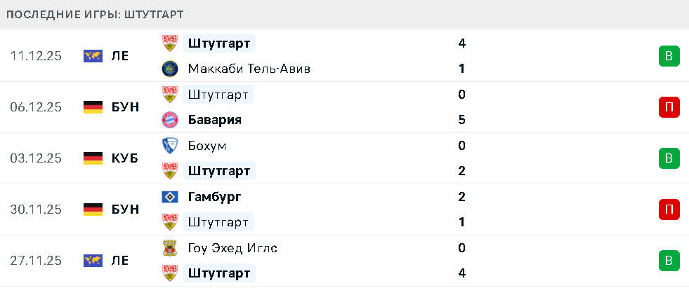 Последние игры Штутгарта